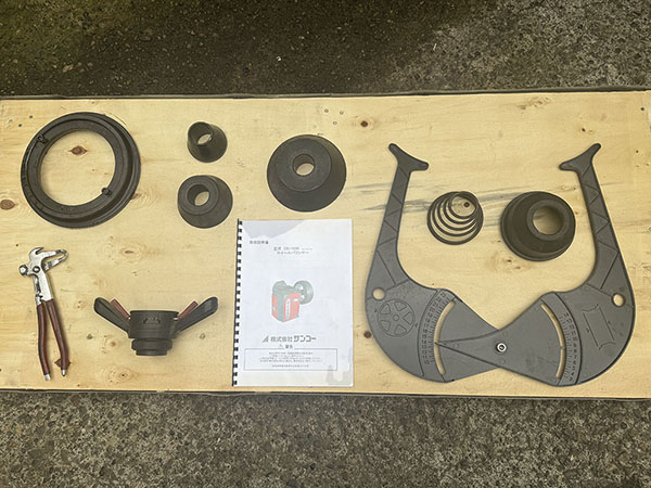 | 附属品 | 1.フランジ×1 2.テーパーコーン/44.5~74.5×1 3.テーパーコーン/72~102×1 4.テーパーコーン/98~150×1 5.コーンフランジ×1 6.ウエイトプランヤ×1 7.クイックロックナット×1 8.キャリパー×1 9.コーン用スプリング×1 10.クランプフッド×1 |